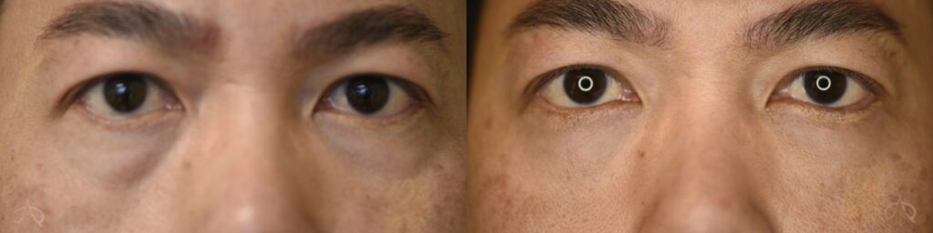 Patient is a 54-year-old male who received a lower blepharoplasty. The photos were taken 4 months apart.