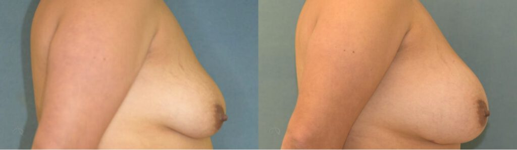 Patient is a 25-year-old female; she is 5’1’’ and weighs 125 lbs. Patient wore a 32B from Victoria’s Secret pre-surgery and now wears a 34D bra after surgery. Patient got 400cc smooth round moderate plus profile silicone gel implants on both breasts and had a breast lift (mastopexy) on both breasts to bring the areola more superior. Patient also had liposuction on her arms and removed a total of 610 mL of fat from both arms.